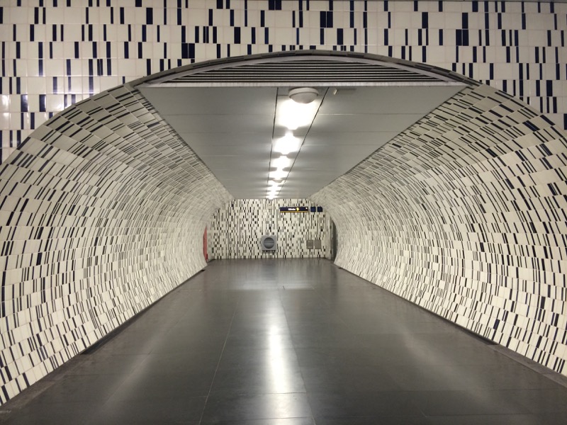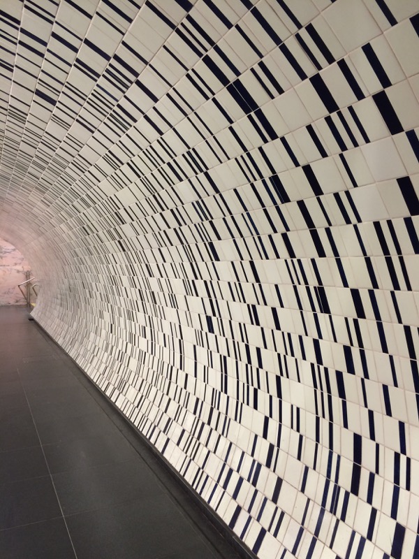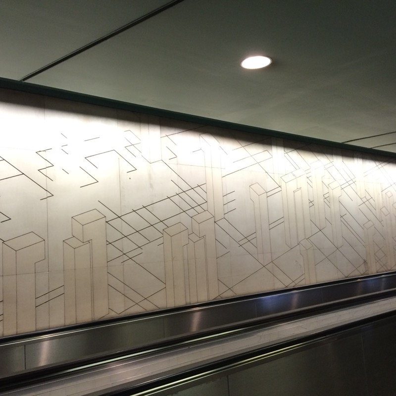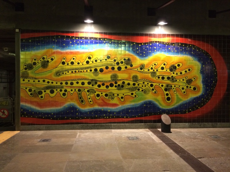 I imagined it would be a challenge to create artwork that would be seen mostly in dark, underground passages, but this station was especially dark. Maybe it was supposed to be moody.