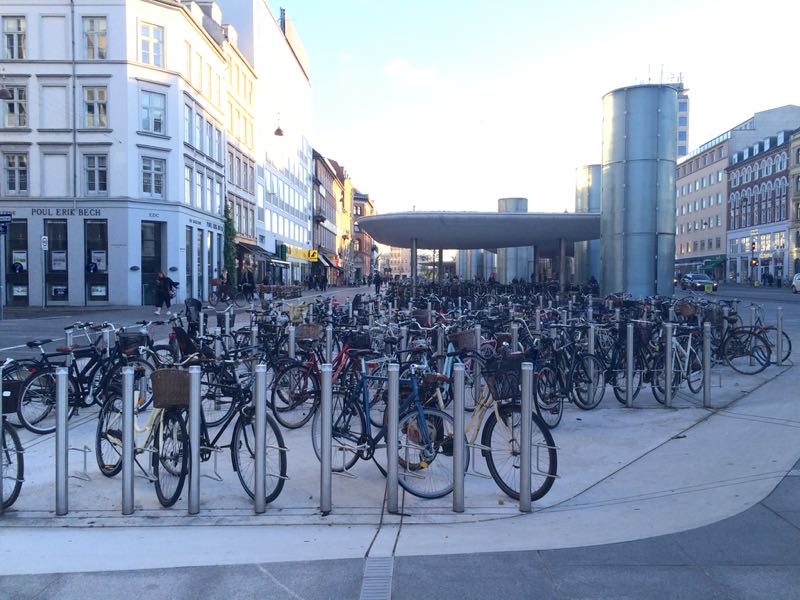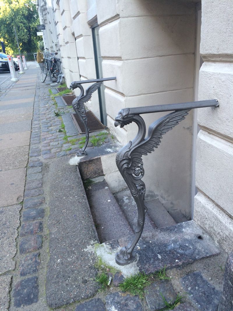 Now that we have been here a day, we are starting to get familiar with the little touches, like these winged bird balustrades alongside the steps leading down from the street. We head out the back of Torvehallerne, turn right on Fredericksborgade, and arrive at the Metro station. (If you thinking typing the names of the streets is tough, try saying them.)
