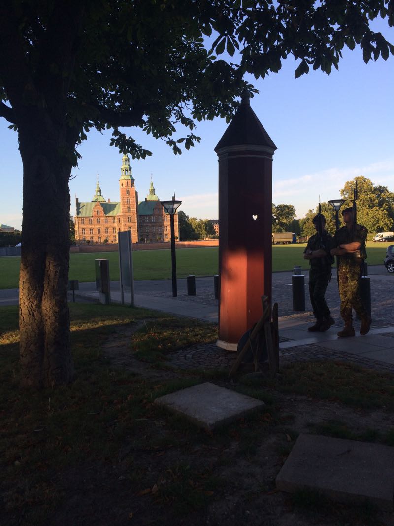 We walk along the backside of Rosenborg Slot, where the guards maintain a walk back and forth from one guard post to another, the sweet little heart cut-out just visible. I never dare get too close, but it’s an interesting touch to have a heart on a guardhouse.