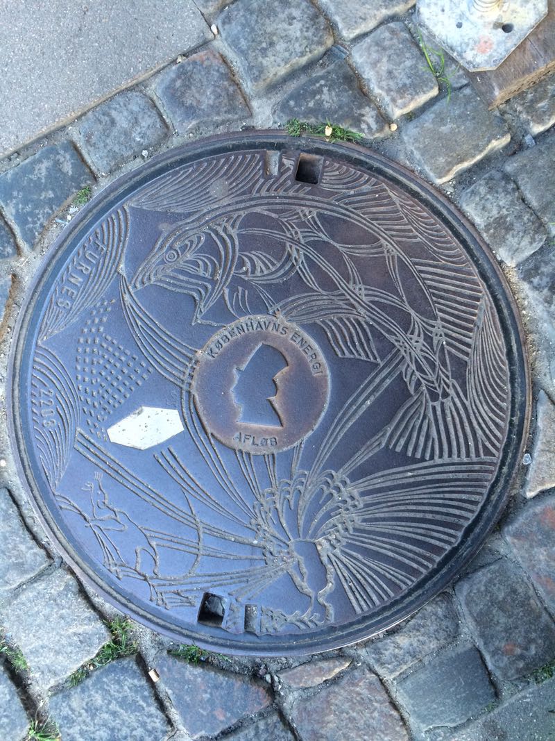Hans Christian Anderson’s profile on the street covers. Is this one water? Electrical? No matter–they have quite a collection of them.
