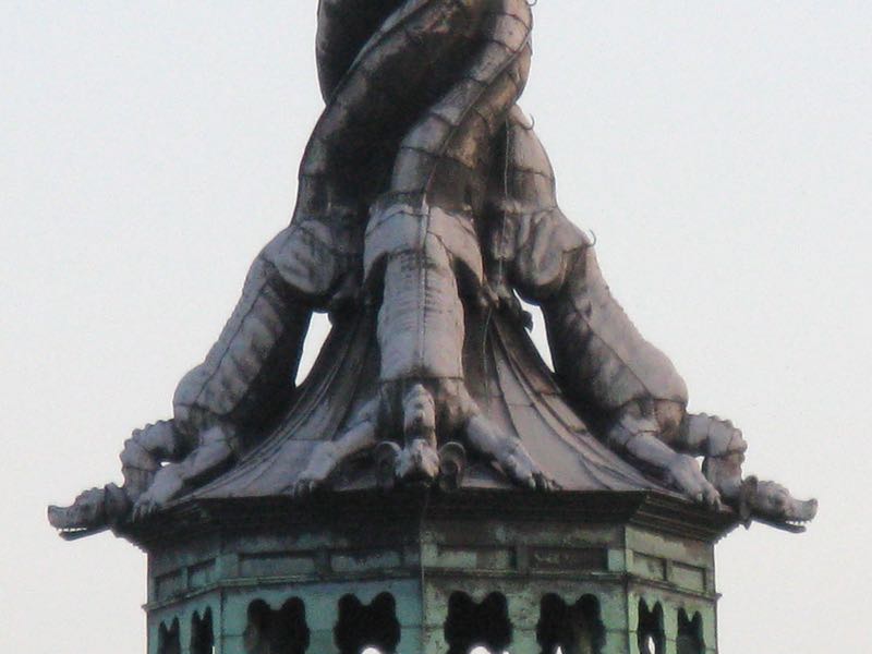 That is on the steeple atop Boursen, the former stock exchange from the 17th century. It has four dragons with intertwined tails.