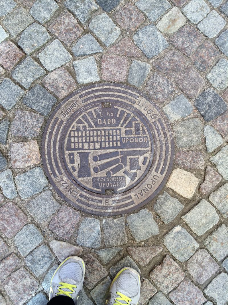 I think UPONOR does sewer, drainage sort of things, but I did love the way the cobblestones are set in a circle around this one.