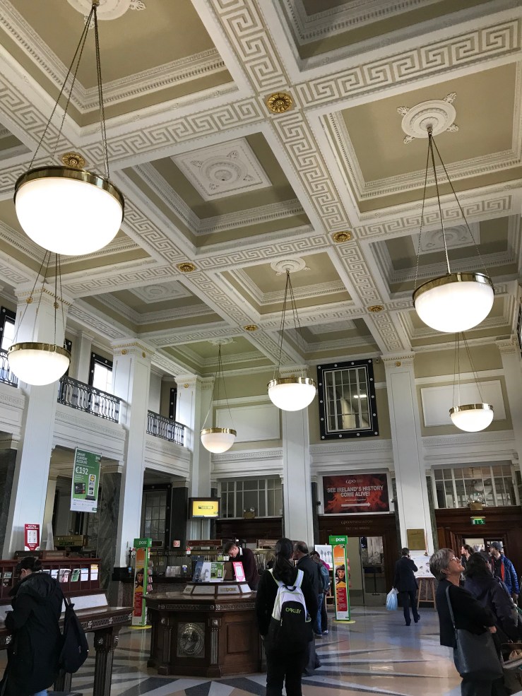 The Dublin Post Office was on the way, and I often buy one beautiful stamp from a country as a souvenir. This time I purchased postcard stamps as well. What a beautiful building! I imagine the other ones aren’t like this, but I did have severe Post Office Envy.