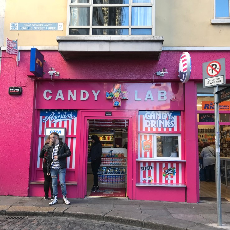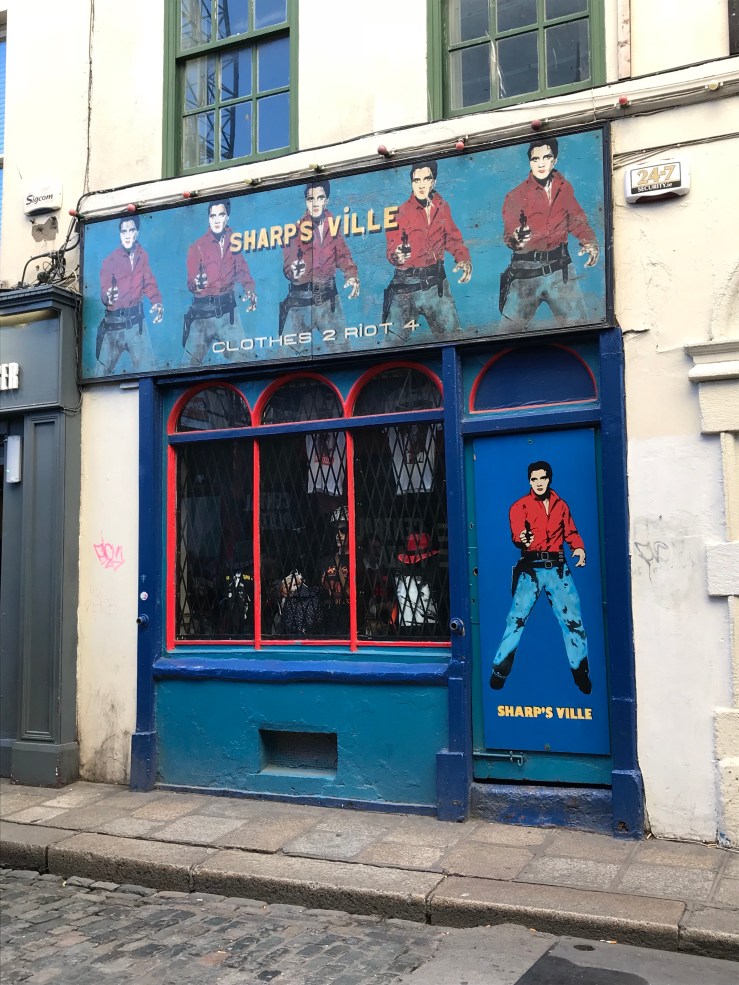 Fun stores and buildings on the way to dinner. We also saw the first of many many many buskers (or street musicians–the term can vary) (click the link to see a white Irish Rapper).