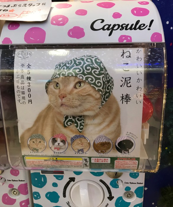 I take Dave around and show him the Character Street underneath Tokyo station; he’s not that impressed, but he did agree to take a photo of me at the Totoro shop.  We saw a vending machine for a kitty hat (for a cat) along the way.  They do have a thing for cats.