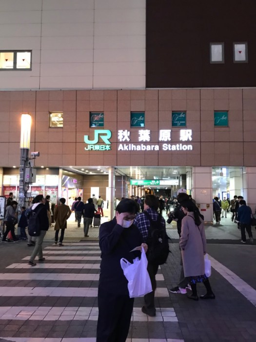 We decided to head to up to Akihabara Station to see the neon lights of the electronics section of Japan — aka Electric Town.  We’ve tried to hit all the major sections of Japan, and this one is our last.  At one subway station, we changed lines, and it was time for a bathroom break.  As I waited in line, I could hear lots of waterfall sounds, but it wasn’t until I got in there that I realized that it was all the toilets making the water sound. I guess they want you to do your business quickly, so they help you out.  (I’d also heard that at the Bamboo Shrine.)  When many of the Japanese woman would get to the mirror to wash their hands, they would dip their fingers in the water and groom their hair.