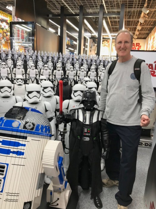 Finally we find the Star Wars figures—some about three feet high.  We pose, and then find the silliness of the electronic marching figurines. Turns out to be a real hit with my Instagram followers, with many funny comments.