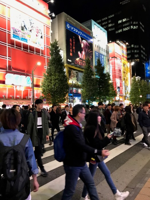 Electric Town is overwhelming, with lots of people, lots of lights, huge buildings. I wonder if I could find a Molly Qee blindbox toy, and we ask, trying to find out way there by kind people who give us strange directions in a heavily accented English, while we don’t speak their language.  We wander around, find the shop—no, no Molly Qees, and then decide to head back to the Ginza area.