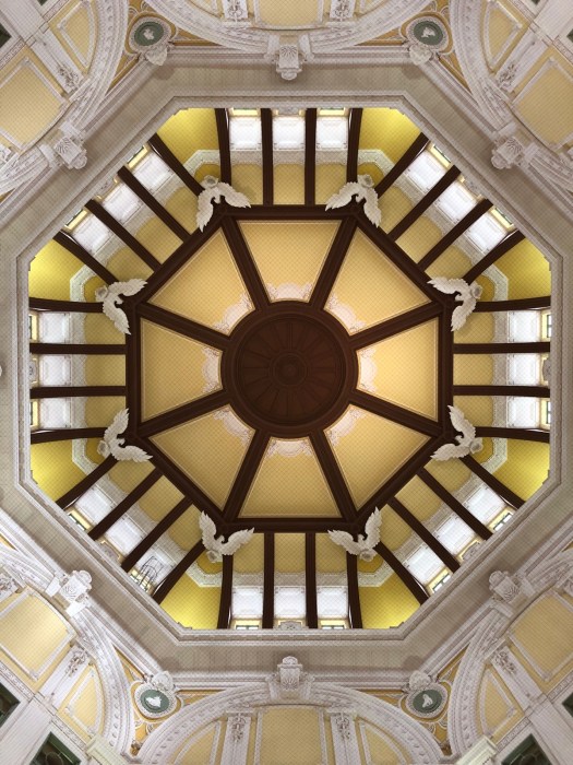 The main Tokyo train station, from the outside, is a brick colonial-looking building, and it’s obviously been refreshed recently.  Dave was interested in the interior, in the cupolas, and took several photos of them, getting them just perfect.  It’s interesting how the first time through here I was so disoriented and turned around and confused, but now I knew to head to the tunnel under construction, walk for several minutes to end up in the food section.