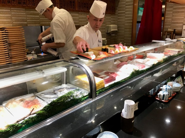 We went there because of online recommendations but as we turned the corner we saw the conveyer belt sushi place, and wow—do I wish we’d eaten there instead.  Next trip.